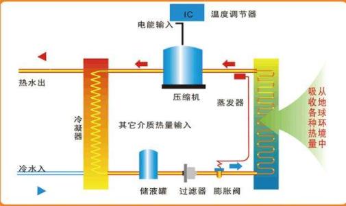 了解更多+空氣源熱泵熱水機組是借助一小部分電能驅動壓縮機通過熱泵蒸發器從空氣中收集熱量,通過冷媒吸熱氣化壓縮后形成高溫高壓氣體,在通過冷凝器“搬運”到水中釋放熱量。