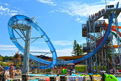 水上樂園設(shè)備大回環(huán)滑梯采用透光玻璃鋼材料,游客置身于緊閉的艙體內(nèi),隨著3·2·1的倒數(shù),腳底踏板打開,從16米高的平臺上通過水的潤滑作用,身體如同坐過山車般沿著幾近垂直的滑管高速滑行,具有強烈的視覺沖擊力及觀賞性,讓觀望者也膽戰(zhàn)心驚。